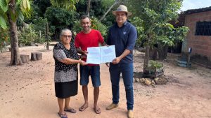 Em Amarante do Maranhão, Maria dos Remédios Chaves Cavalcante e o filho Rafael Chaves, também contaram com a consultoria do Sebrae para regularizar os 43 hectares da Fazenda São Bento II. Durante a entrega do documento, Rafael Chaves, reforçou a importância do processo: “Esse documento traz estabilidade jurídica para qualquer produtor rural. A parceria com o Sebrae foi essencial e ágil na entrega, disse.
